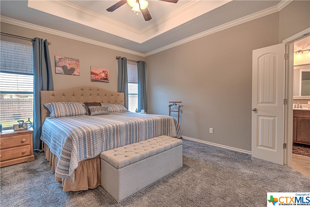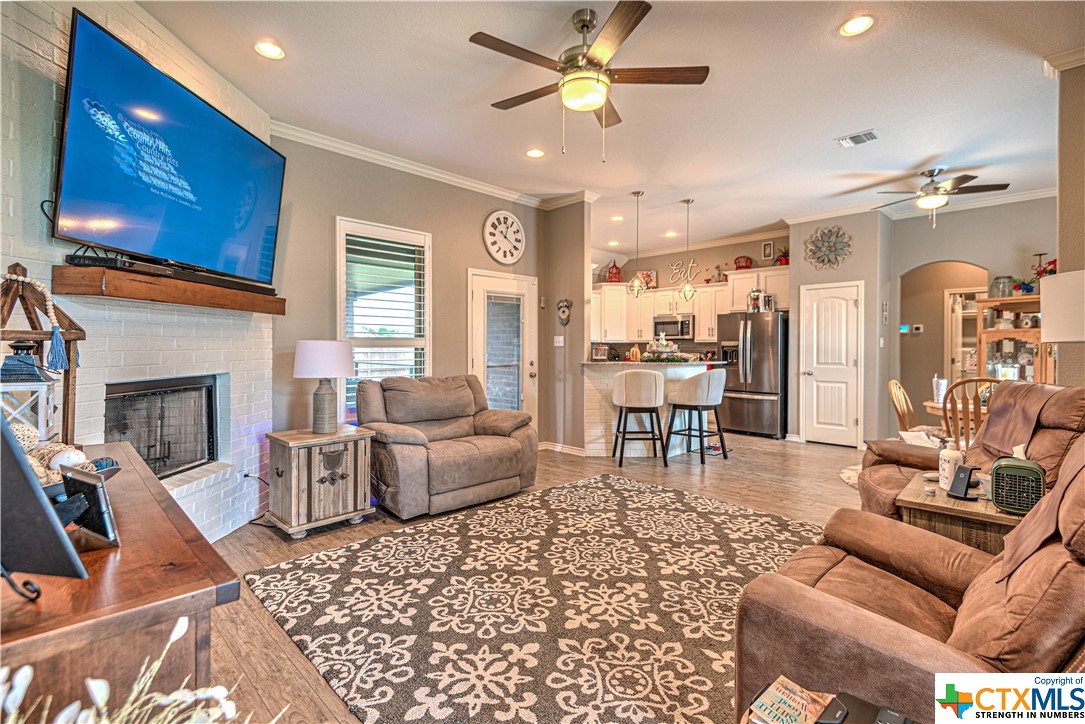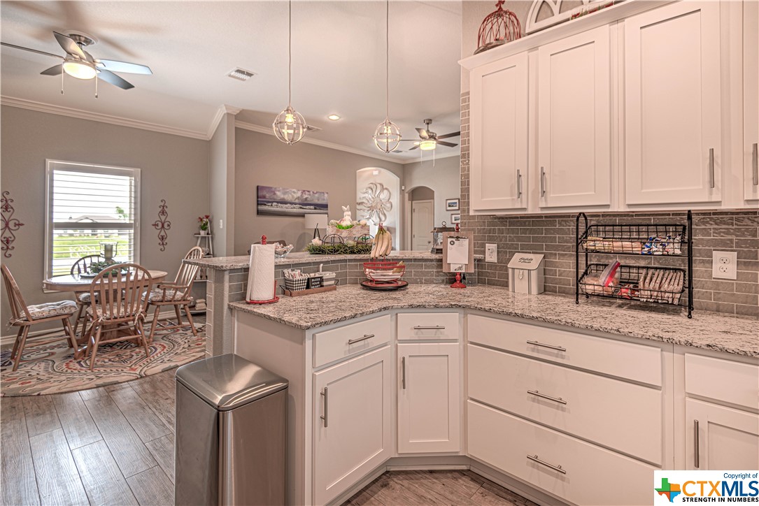 Welcome to the prestigious Turtle Creek Subdivision! This gorgeous 3-bed, 2-bath home offers a luxurious living experience. Inside, you will find high end vinyl plank floors and carpet only in the owner suite, trey ceilings with crown molding throughout and a cozy fireplace for those cold winter nights. The kitchen is spacious and is equipped with granite countertops, subway tile backsplash, stainless steel appliances and plenty of counter space. Enjoy your morning coffee on the extended covered patio that has safety railing and privacy fence for added security. The owner suite features a large shower with 3 shower heads, double sinks, plus a walk-in closet. You also have an office/flex room perfect for working from home or a hobby space! There are 10ft ceilings throughout. The yard has sprinklers system for easy landscaping maintenance.
